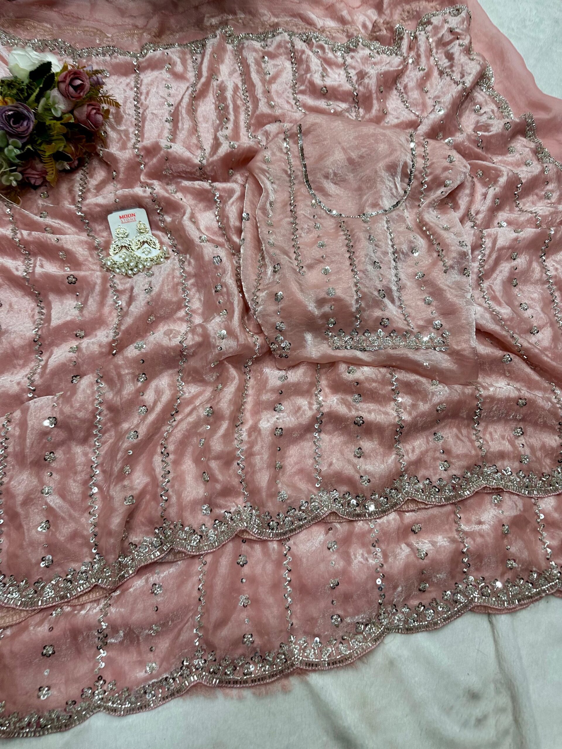 Emblished space silk saree