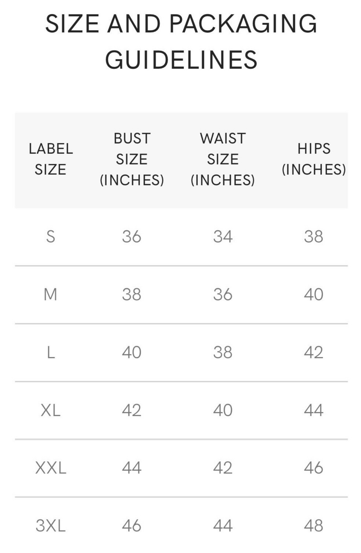 • Size Chart