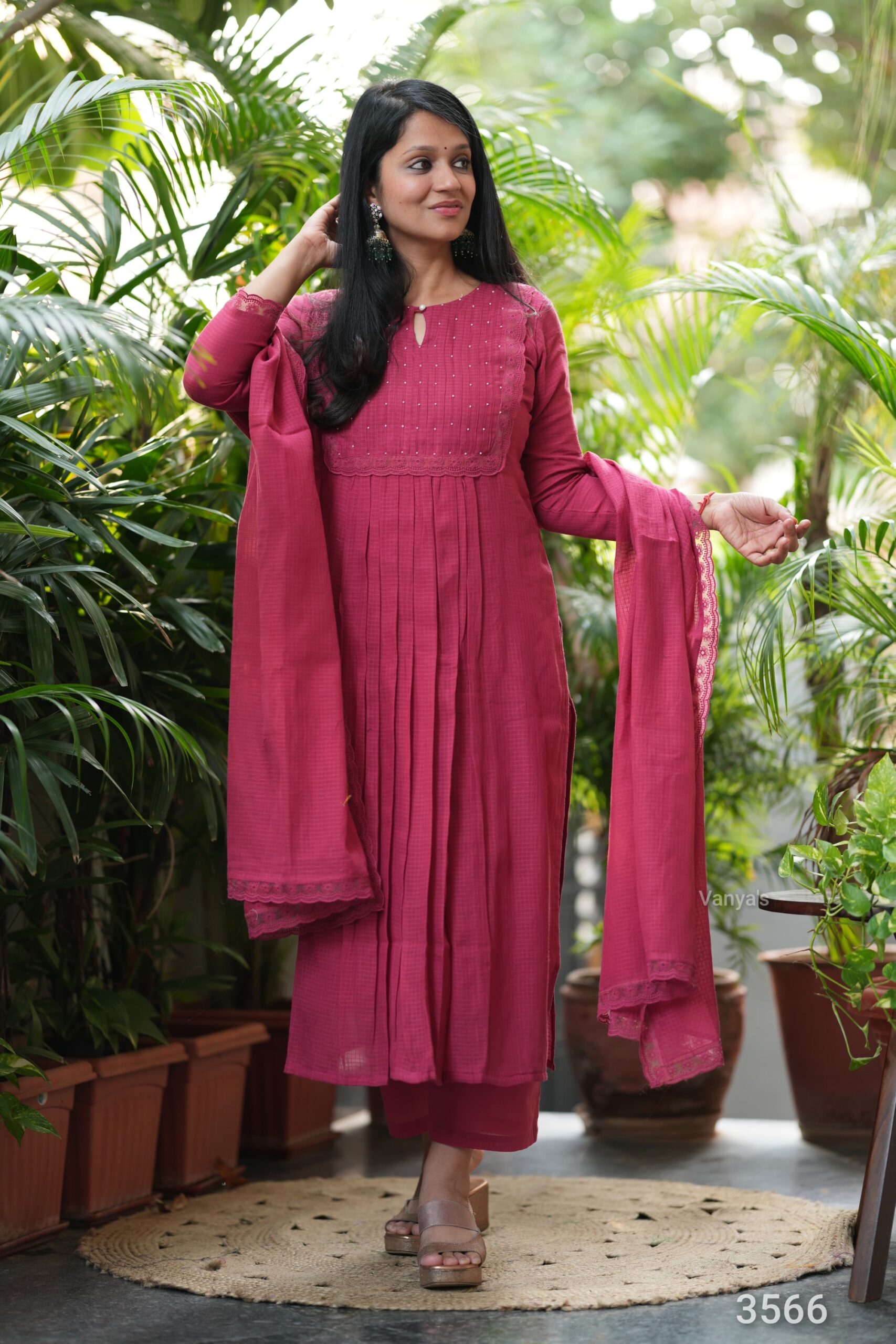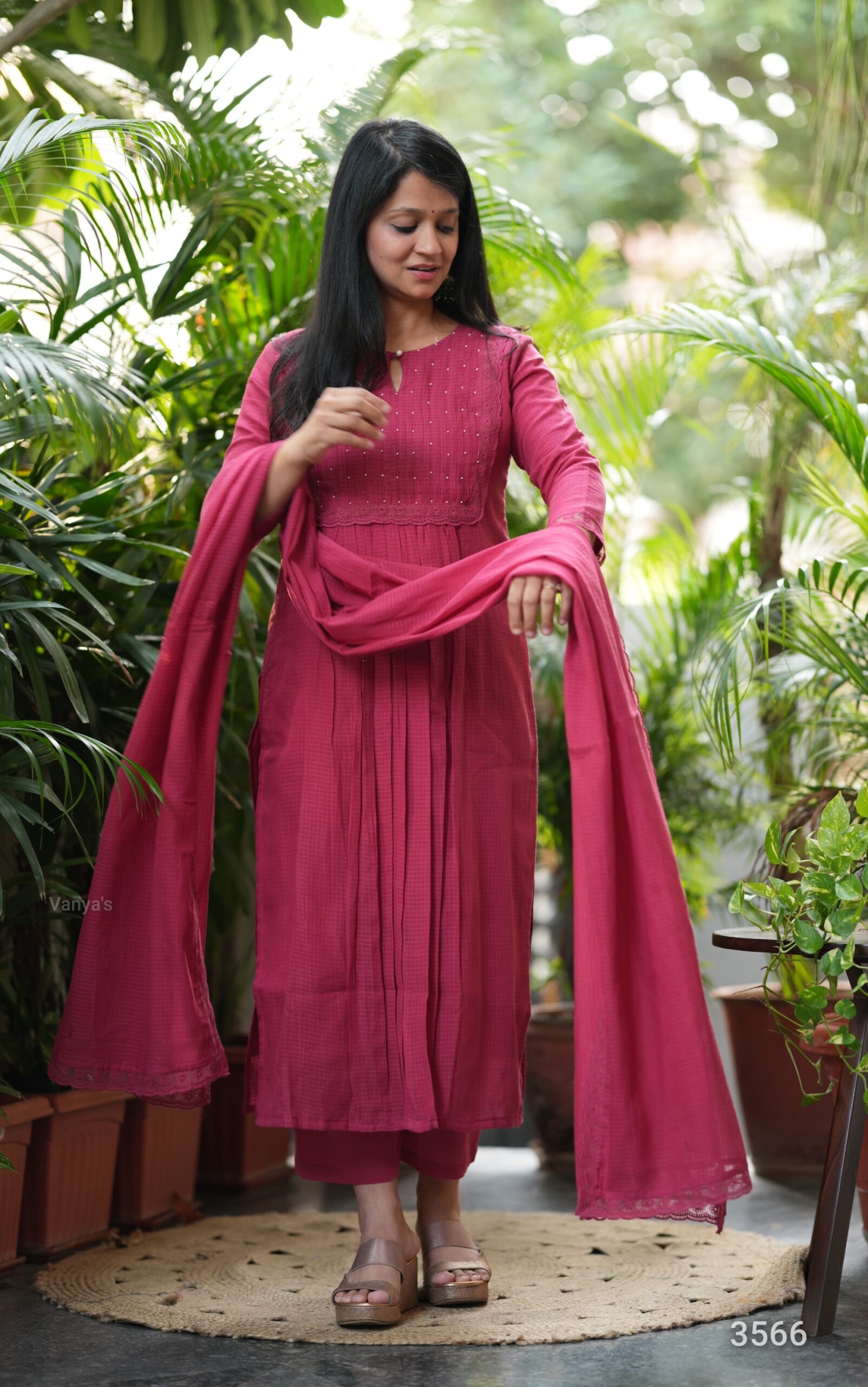 Explore this summer with this beautiful hot pink pure soft cotton kota doria kurta *(full cotton lining)* with matching cotton pant Paired and soft cotton based kota doria duppata.